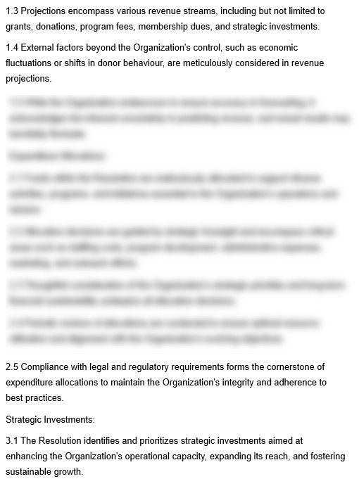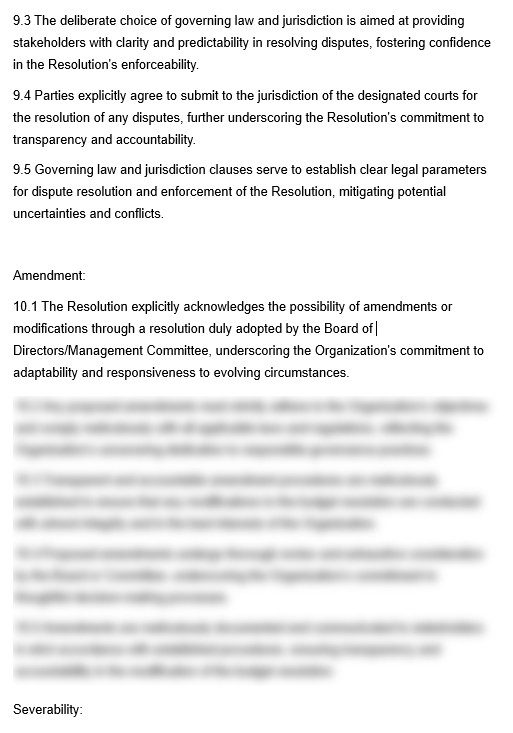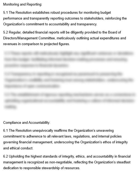 Legal base: The legal basis for an Approval of Annual Budget Resolution lies in corporate law, regulatory requirements, and the organization’s governing documents, such as its articles of incorporation, bylaws, or shareholders’ agreements. Organizations must ensure compliance with relevant laws and regulations governing financial reporting, transparency, and accountability.