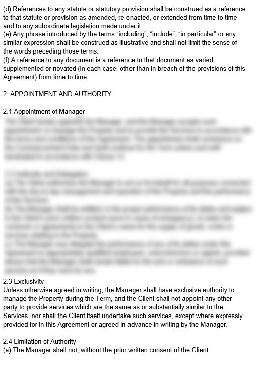 What it is: This template provides a comprehensive framework for formalizing the relationship between a property owner and a property management entity. It includes provisions covering key aspects such as property management fees, services provided, lease administration, maintenance responsibilities, financial reporting, and termination conditions.